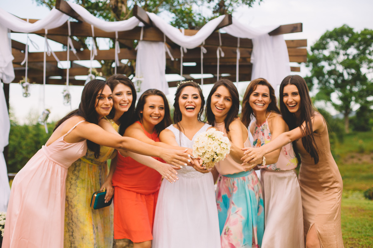 Noiva com as madrinhas felizes